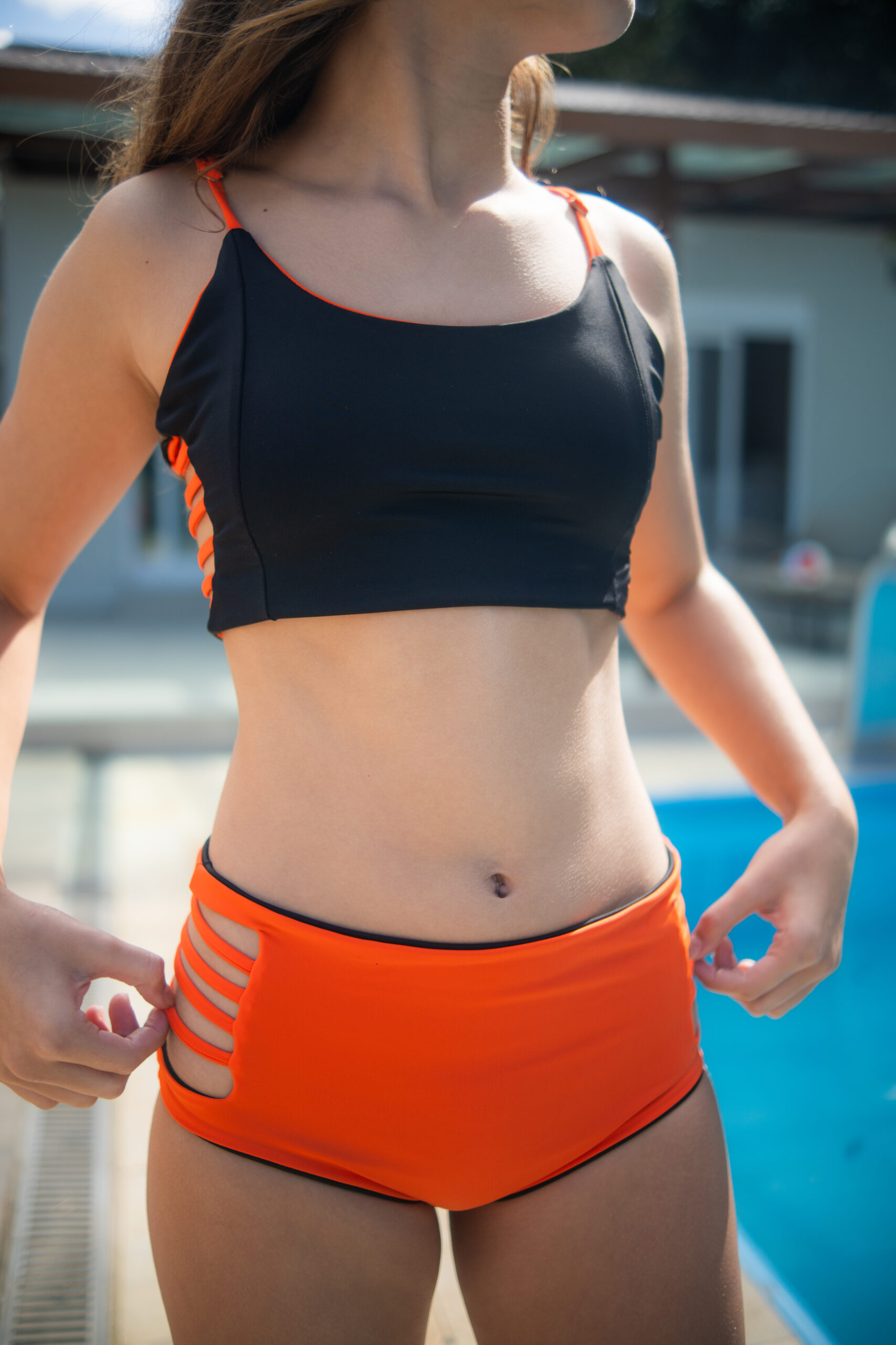 BÍQUINI PRAINHA PRETO CO LARANJA